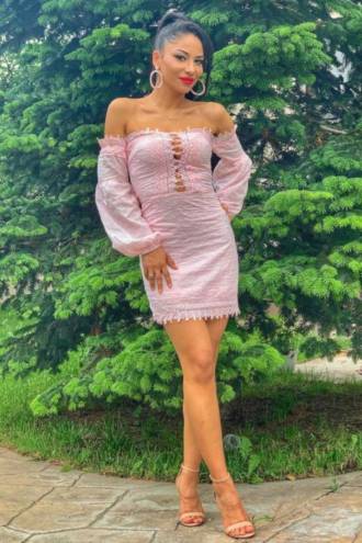Rochie mini cu aplicatii de broderie. Aplicatii de volane. Decolteu tip barcuta. Manecute din dantela. Lungime aproximativa: 85 cm. Modelul poarta marimea S. Culoare: roz. Compozitie: 95% Poliester, 5% Elastan.
