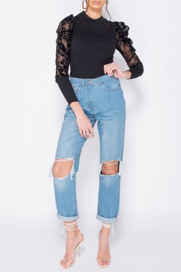 Top negru din plasa cu aplicatii broderie florala.