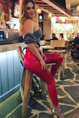 • Colanti vinil cu talie inalta. Culoare rosu.