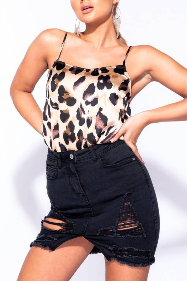 Fusta mini din denim cu aspect uzat. Rupturi...