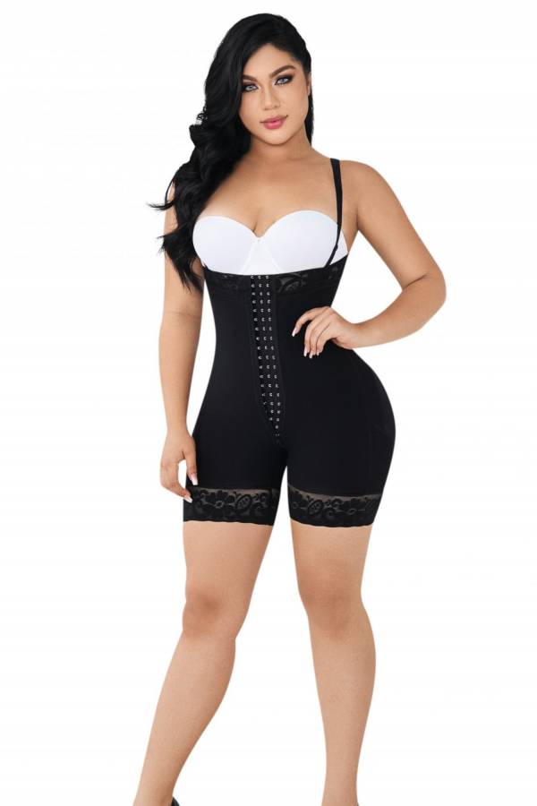 Body modelator disponibil in varianta negru sau nude, de lungime pana la jumatatea coapsei cu bretele detasabile.