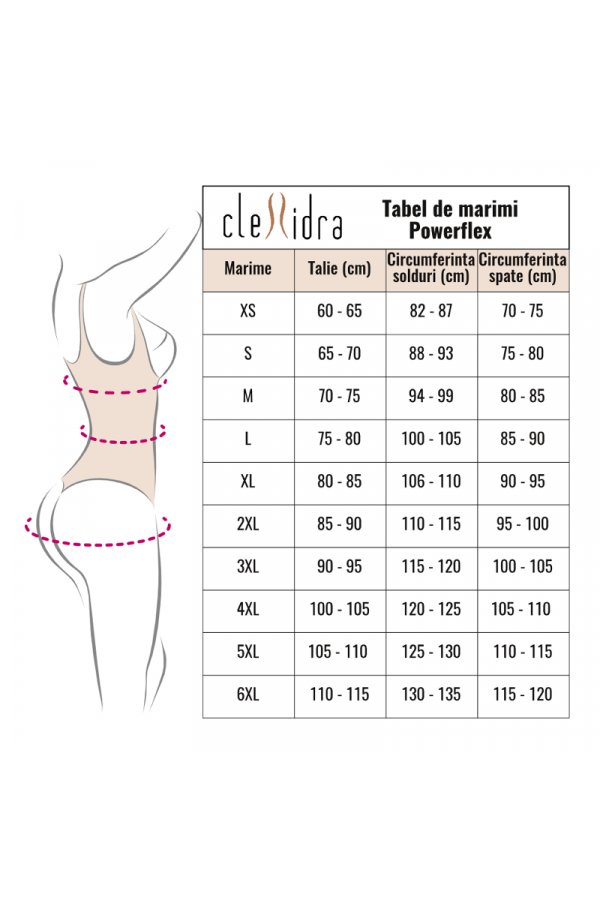 Atentie: Lenjeria modelatoare se recomanda persoanelor peste 18 ani. Se poate purta pana la maxim 8 ore zilnic! Nu se poarta in timpul noptii! Produsul trebuie sa fie suficient de comod, astfel incat sa nu va incomodeze sa respirati sau sa va miscati. Nu fortati o marime mai mica si alegeti-va marimea in functie de dimensiunea taliei dvs. conform tabelului de marimi. Pentru folosirea lor post operator sau daca aveti diverse probleme medicale va rugam sa va consultati cu medicul dumneavoastra curant. In caz de disconfort intens sau dureri intrerupeti imediat folosirea. Nu se poarta daca sunteti insarcinata!