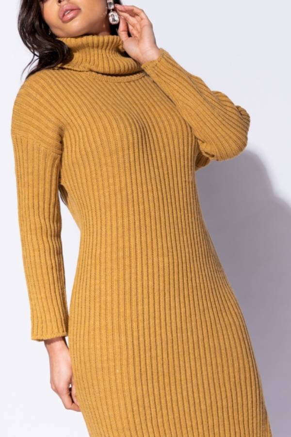Rochie midi, cu croi oversized. Culoare galben mustar.