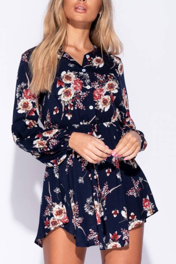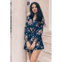 Rochie mini, bleumarin, cu imprimeu floral.