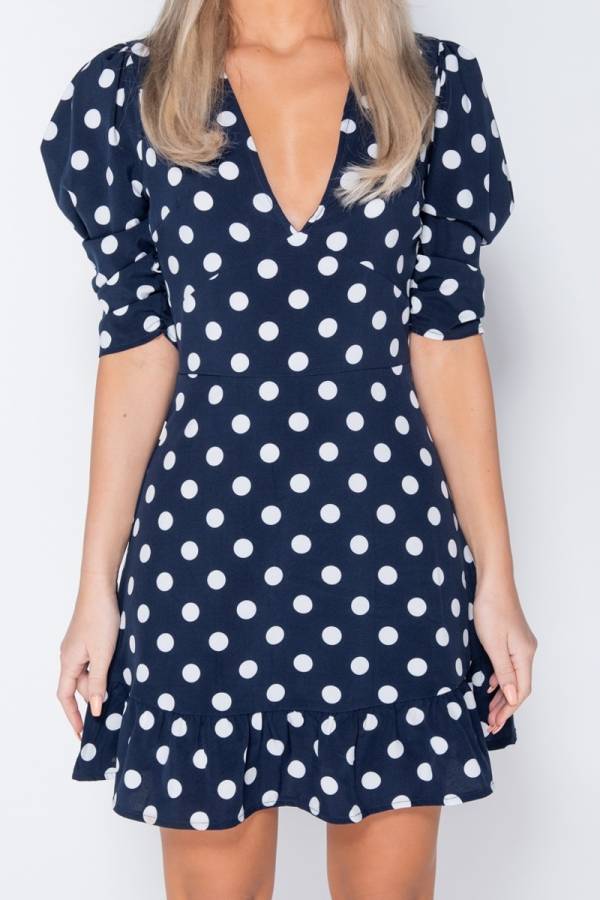 Rochie foarte feminina si diafana cu buline aalbe pe fundal roz pal.