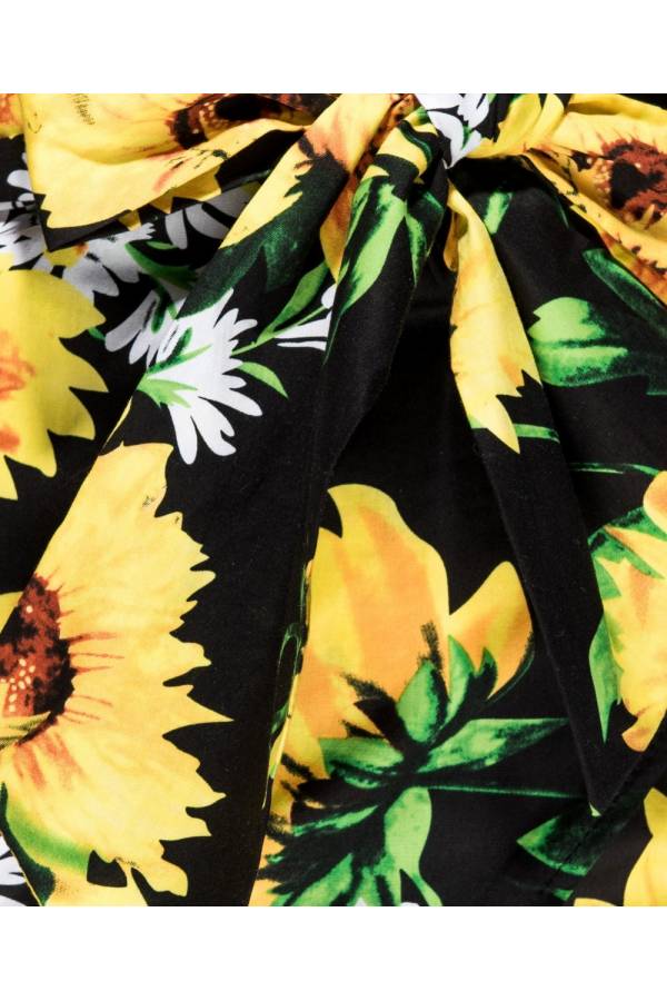 Funda decorativa in talie pentru un efect spectaculos. Imprimeu cu floarea soarelui pe fundal negru.