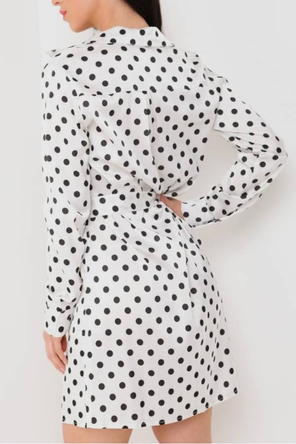 Imprimeu cu buline negre pe fundal alb.