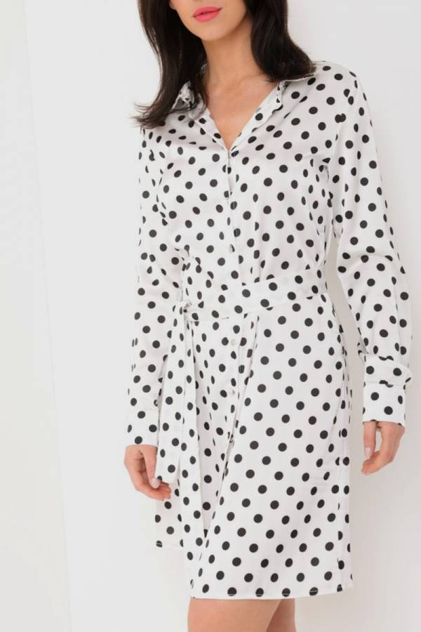 Rochie tip camasa cu nasturi si codon in talie din material satinat.