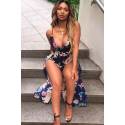Salopeta cu pantalon lung, cu decupaje ample si decolteu adanc. Pantalon scurt pe sub,