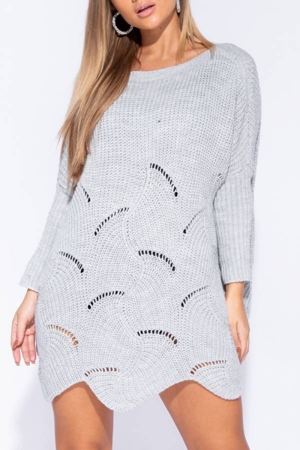Pulover oversized din tricot. Maneca lunga si mici perforatii. Terminatie pe oval.