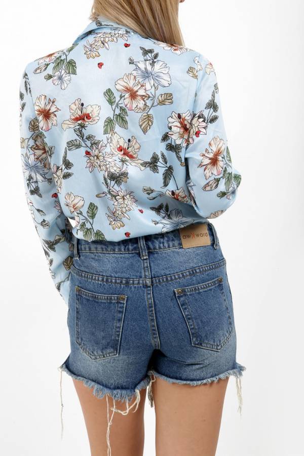 Body satin cu imprimeu floral. Decolteu amplu in V.